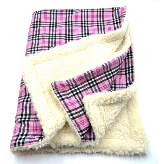 Pink and Grey Tartan Dog Blanket