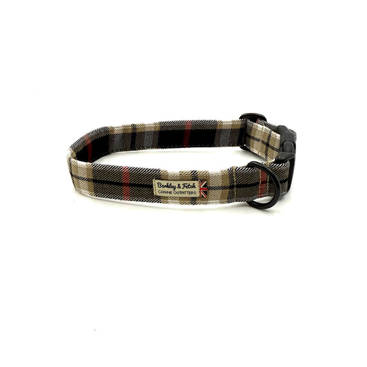 Black Beige Tartan Dog Collar