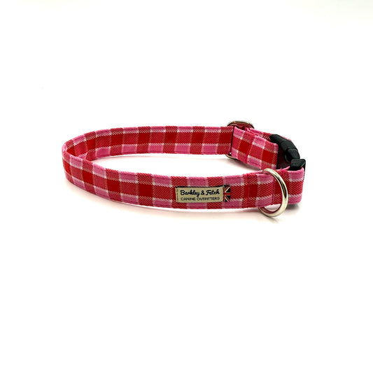 Pink Red Tartan Dog Collar