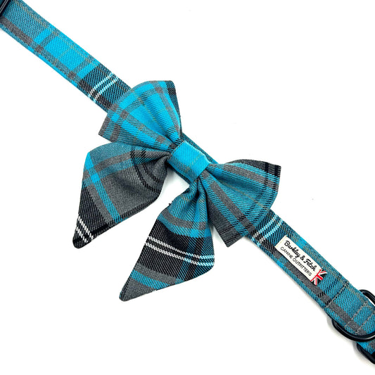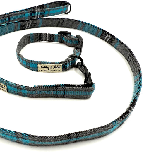Turquoise and Grey Tartan Puppy Collar and Lead Set