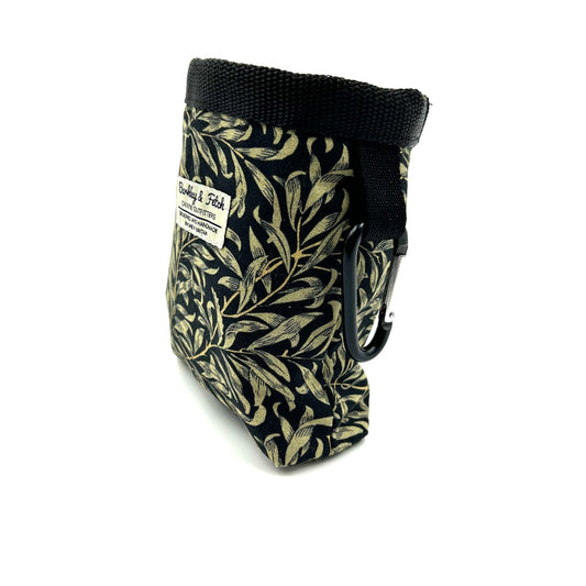 Black Strawberry Thief Print Dog Walk and Treat Bag