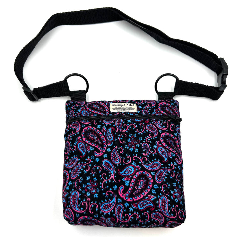 Blue Paisley Corduroy Dog Walk and Treat Bag