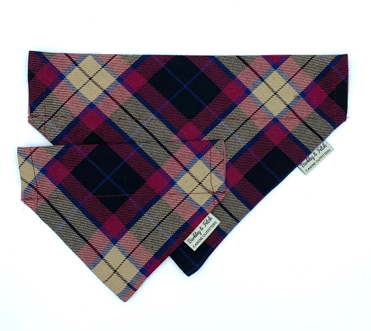 Wine Tartan Slide-On Dog Bandana – Style and Comfort for Your Pup